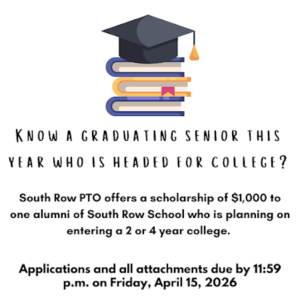 All South Row PTO meetings are held at 7 p.m. in the school Technology Room unless otherwise noted.  Virtual option Available!